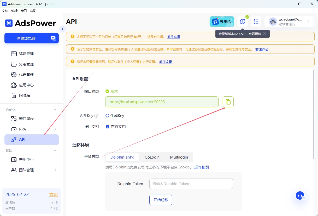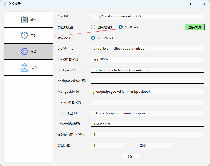 把本地接口复制填写进空头神器-设置中的ApiURL并选择浏览器类型,选择填写完成点击测试连接,如果显示连接成功即可