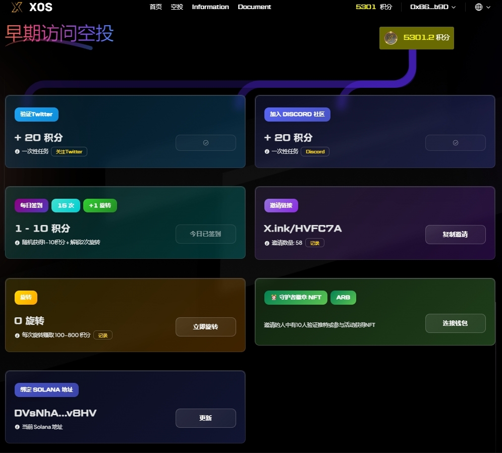 注意事项:每签到10天一次旋转,邀请十人验证可mintNTF需要ARB链的eth为gas,对应窗口需要登入推特、DC。